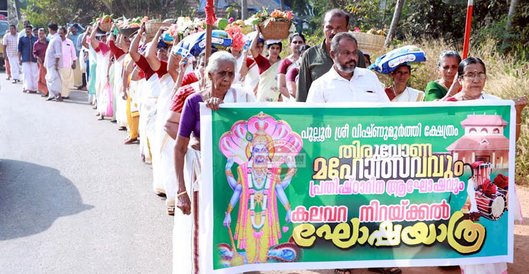 പുല്ലൂര്‍ ശ്രീ വിഷുമൂര്‍ത്തി ക്ഷേത്രം തിരുവോണ മഹോത്സവത്തിന് തുടക്കമായി: കലവറ നിറയ്ക്കല്‍ ഘോഷയാത്ര നടന്നു