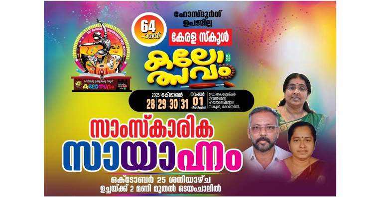 64-ാം മത് ഹോസ്ദുര്‍ഗ് ഉപജില്ല കേരള സ്‌കൂള്‍ കലോത്സവത്തിന്റെ പ്രചരണാര്‍ത്ഥം ഒടയംചാലില്‍ 25 ന് ശനിയാഴ്ച സാംസ്‌കാരിക സായാഹ്നം